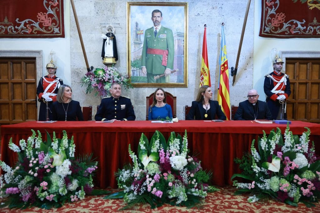 La ceremonia ha contado con la presencia del teniente general Luis Rocandio, el presidente de la Junta Central Vicentina y concejal de Fiestas y Tradiciones Mónica Gil Cano, y el segundo teniente de alcalde y portavoz del Grupo Municipa Vox,José Gosálbez , junto a otras autoridades y representantes del mundo festivo y cultural valenciano.