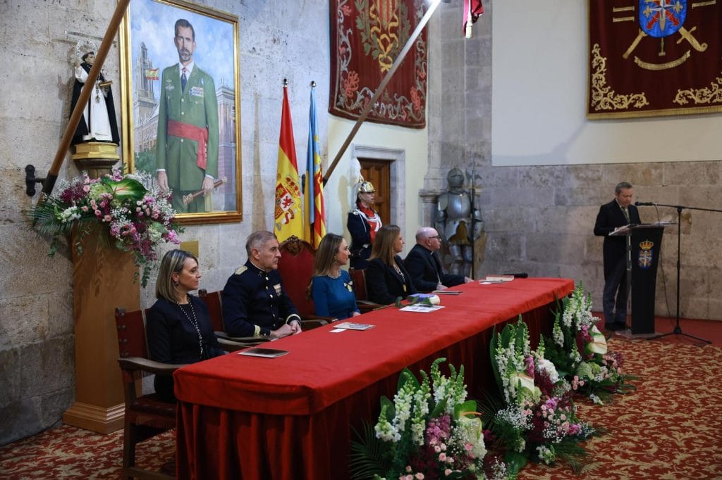 El Salón del Trono del Cuartel General Terrestre de Alta Disponibilidad (Capitanía General) ha acogido el acto de exaltación e imposición de la Medalla de la Junta Central Vicentina a la clavariesa de las Fiestas Vicentinas 2026, Vicenta Evangelina Escudero García, en un emotivo acto que pone en valor las tradiciones y raíces del pueblo valenciano.