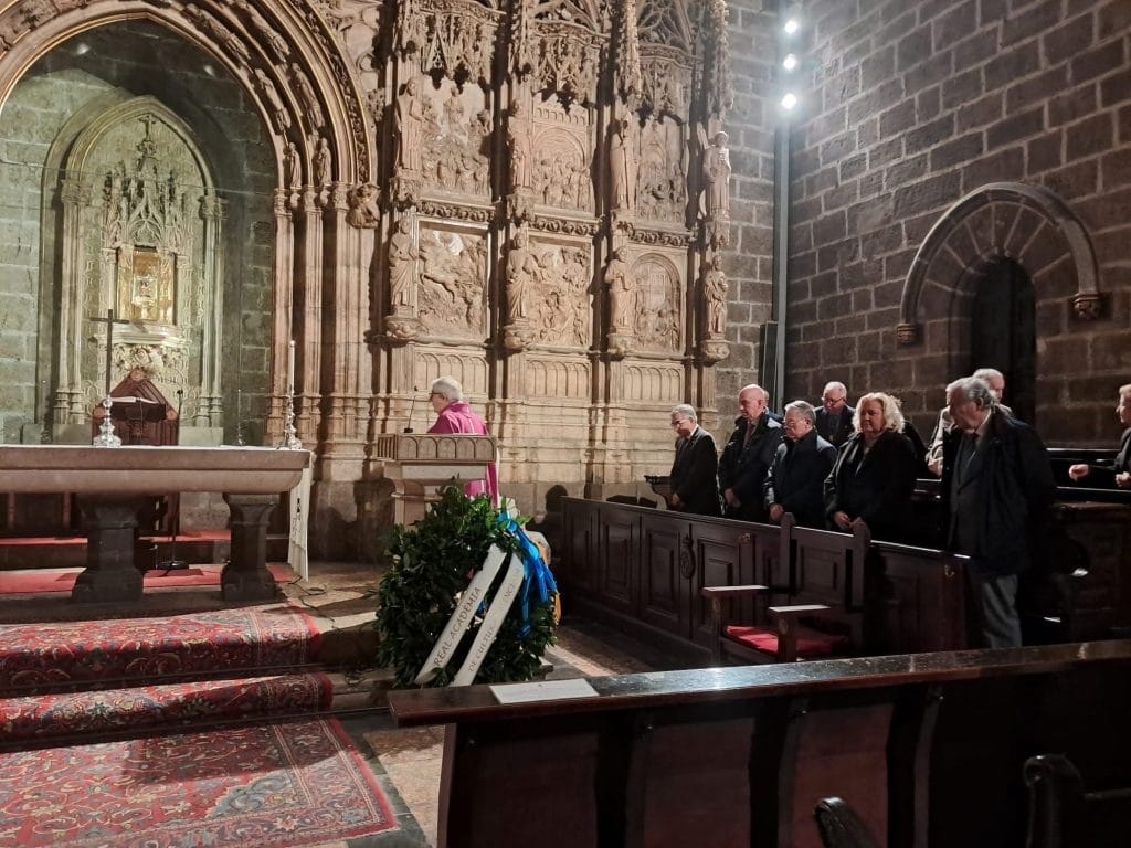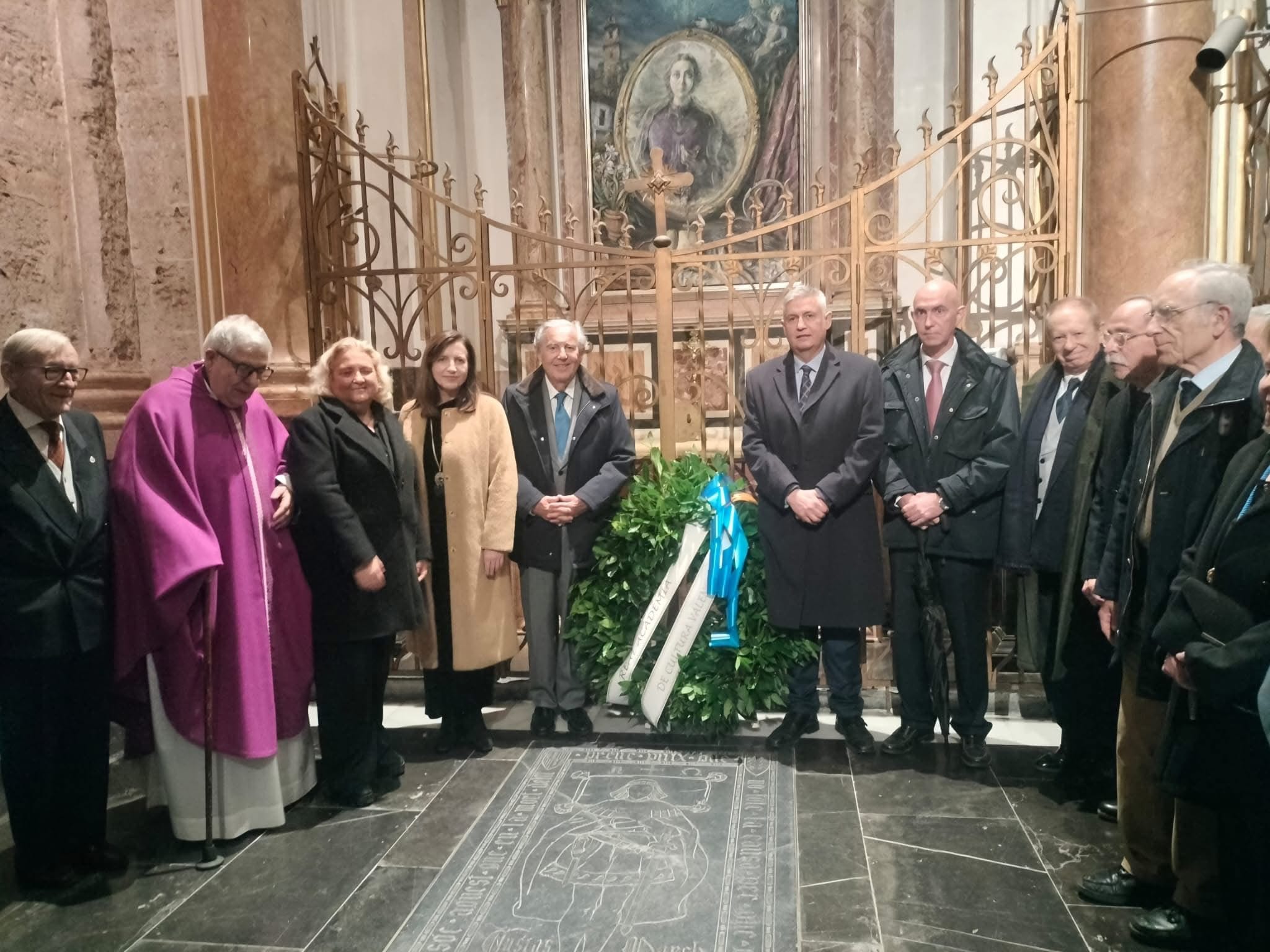 El homenaje concluyó con un momento especialmente emotivo: la colocación de una corona de laurel sobre la tumba de Ausiàs March, llevada por el decano Luis Miguel Romero Villafranca y el presidente de Lo Rat Penat, Josep Vicent Navarro Raga, como símbolo de respeto y gratitud por su legado.