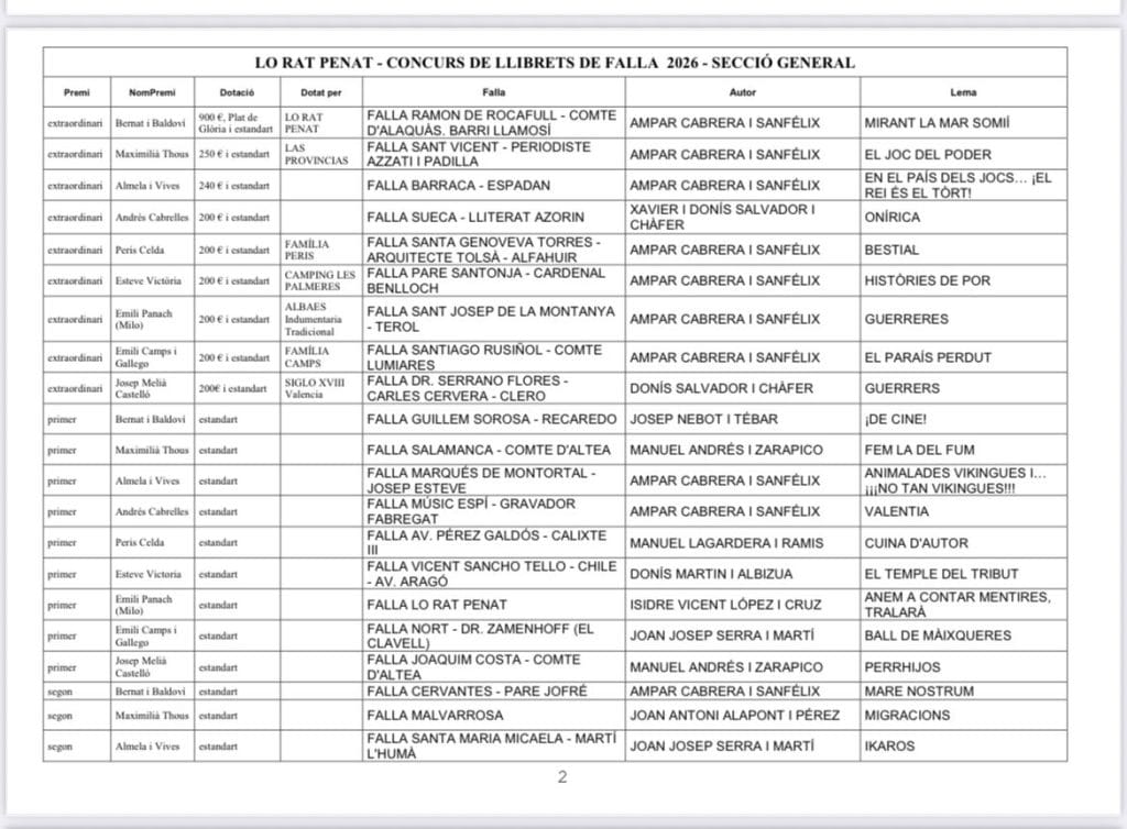 Ampar Cabrera vuelve a hacer historia en los premios de llibrets de falla de Lo Rat Penat.
