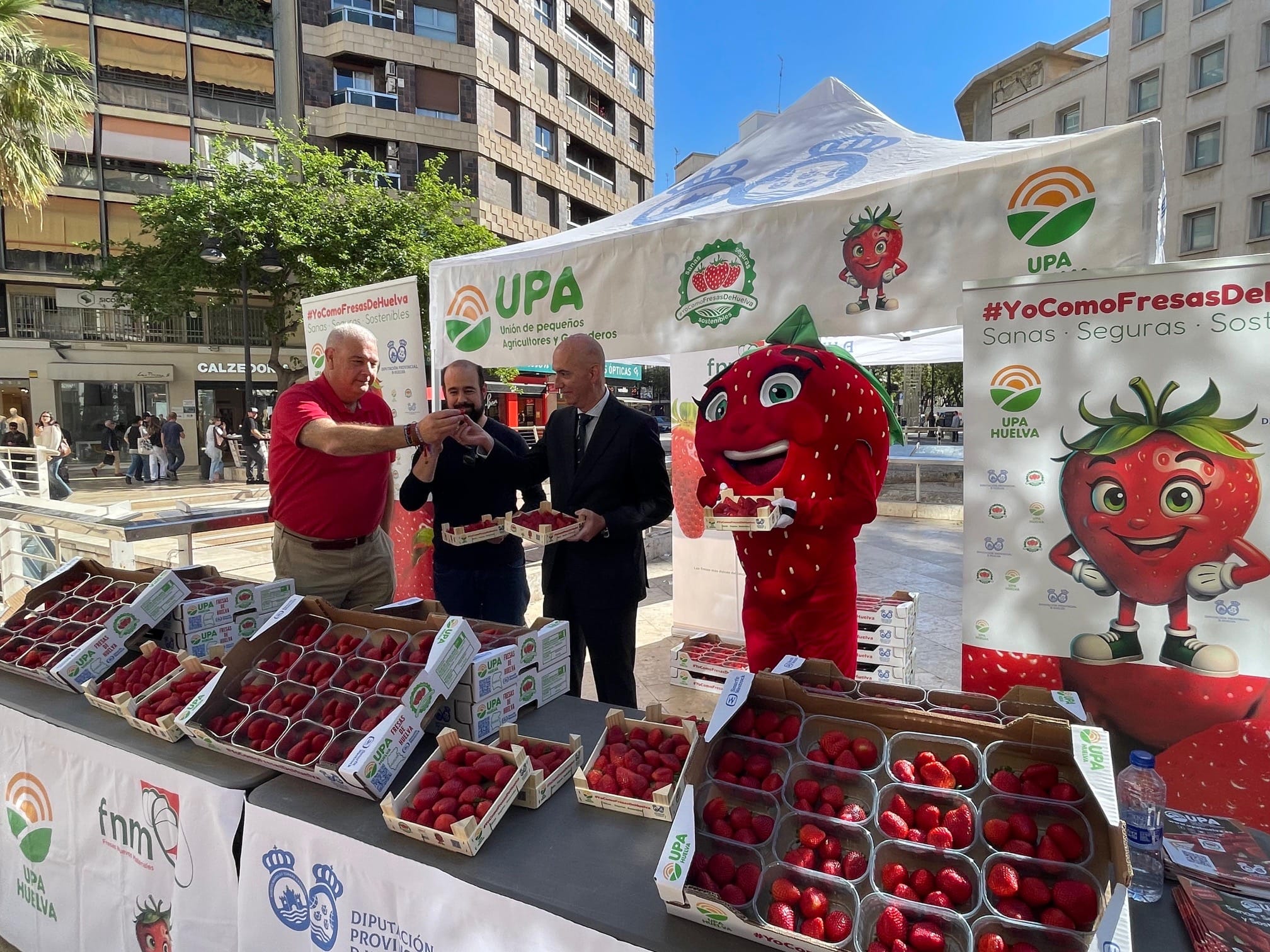 • La Unión de Pequeños Agricultores (UPA) reparte más de 1.000 tarrinas de fresas en una jornada de promoción del consumo de producto nacional